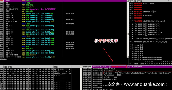 通过ShellExecute 函数将%Temp%\daily_report.docx 打开