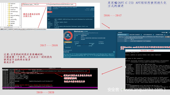 根据 360 的报告,我们可以得知双尾蝎APT组织在 2016 年到 2017 年的活动之中,主要采用的是修改注册