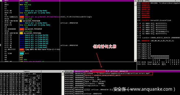 通过ShellExecute 函数将%Temp%\artisan-errors.mp4 打开