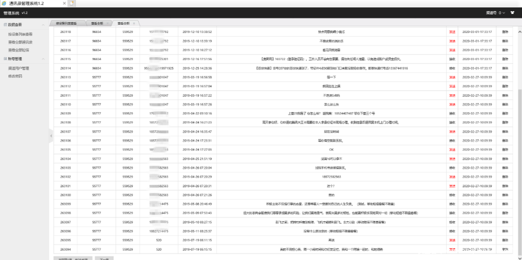 通过对其收集短信信息服务器进行破解,获取到其收集大量用户短信内容的证据: