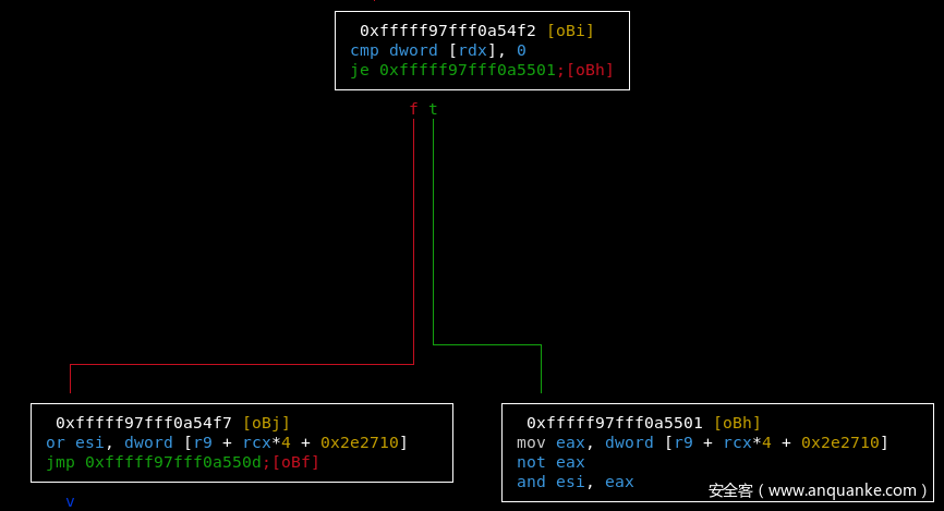 其中 esi 寄存器的值由以下两个分支当中的一个所决定。