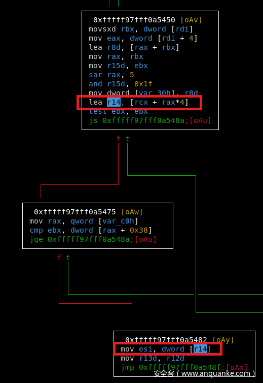 通过 lea r14, [rcx + rax*4] 设置 r14 寄存器
