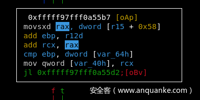 我们的第一个目标是了解如何控制地址 fffff904'c7000240 ,该地址将称为oob_target。 为此,需要对vStrWrite01的相关代码进行逆向分析。 从 mov esi,dword ptr [r14] 指令开始