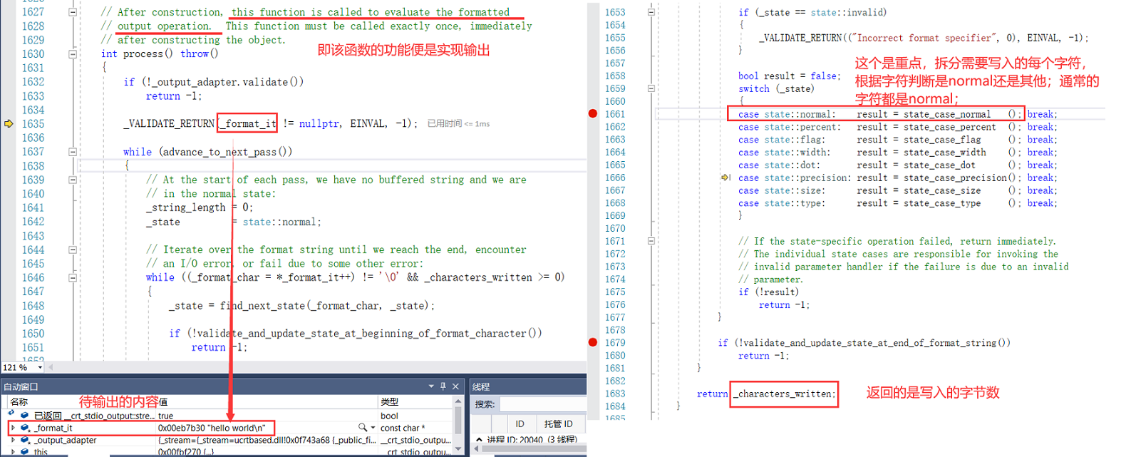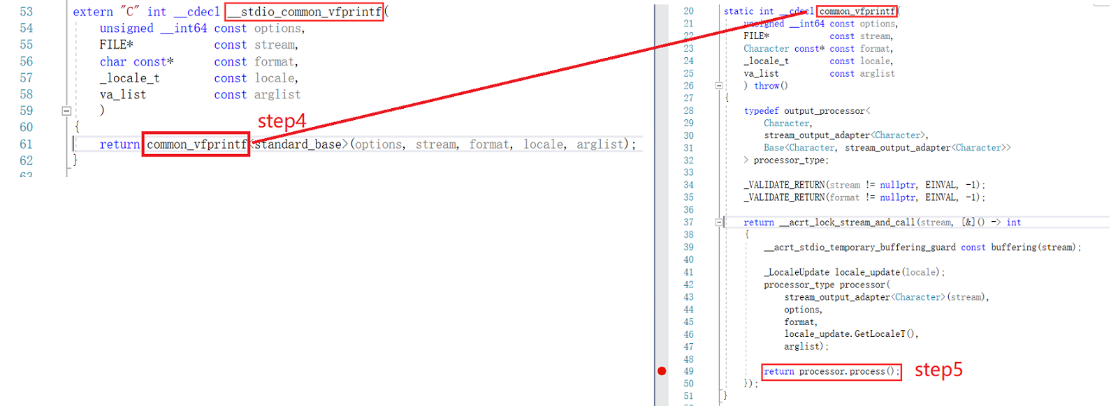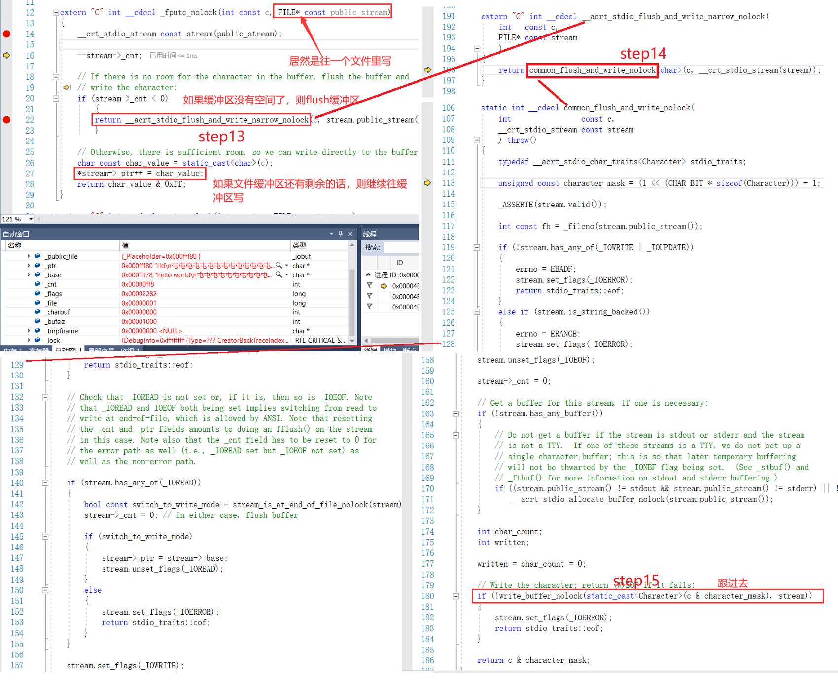 每隔500ms就打印一下字符串“hello world\n”;下边来跟一下VC运行时库的源码;源码步骤比较繁琐,如果不感兴趣可直接略过,看后边的结论;总结起来就是一句话printf——->WriteFile();