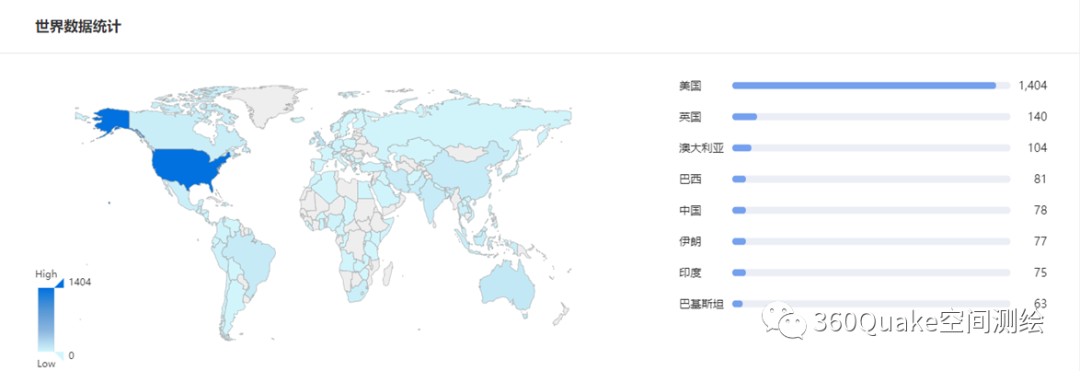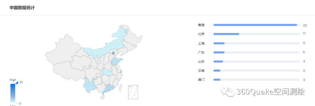 我们发现SolarwindsOrion 的一年内资产数据为3146条,独立IP数量为1414个。国家分布和国内各个省份分布如图所示: