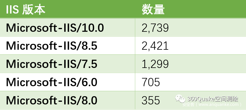 因为iis8.0和iis8.5同属于WindowsServer 2012,所以前四的windows服务器版本环境分别对应的是WindowsServer 2016,WindowsServer 2012,WindowsServer 2008,WindowsServer 2003。