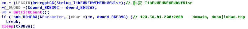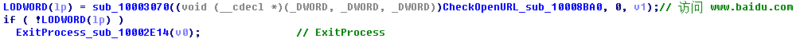 - 通过访问www[.]baidu[.]com测试网络连通性,如果访问失败则ExitProcess。