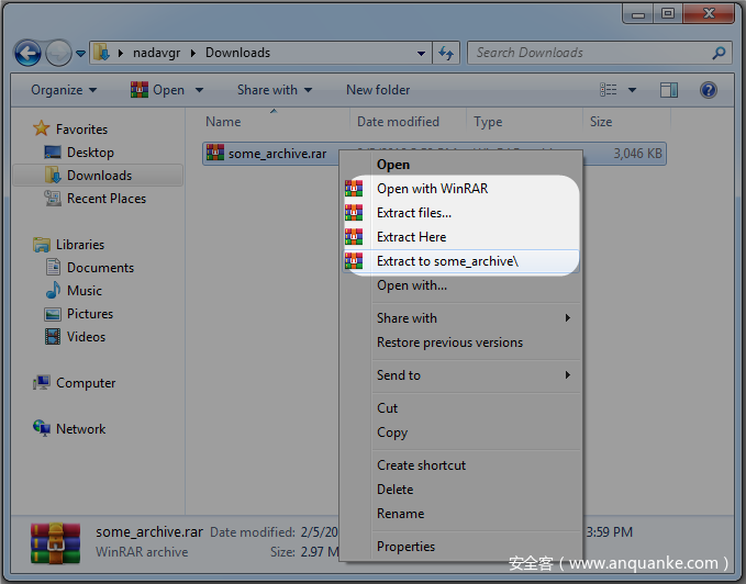 但是,如果通过双击存档文件或右键单击存档文件中的“extract”来执行WinRAR,则WinRAR的“当前目录”将成为存档所在文件夹的路径。