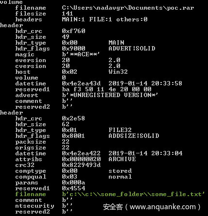 另外,就WinRAR而言,只要归档文件具有.rar扩展名,它就会根据文件的Magic字节处理它,在我们的示例中,是ACE格式。