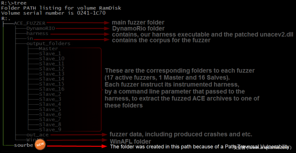 Harness被指示将测试归档文件提取到“output_folders”下的子目录。 例如,R:\ACE_FUZZER\output_folders\Slave_2 。 那么为什么我们在父目录中创建了一个新文件夹呢?