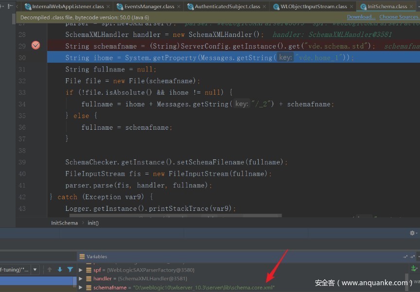 触发漏洞是在启动weblogic服务时,在”D:weblogic10wlserver_10.3serverlibschema.core.xml”文件写入