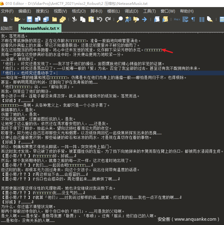 本题的虚拟机共有7个vmdk,一个很小的和六个分别编号1~6的较大的,其中较小的文件可以用文本编辑器打开,且内容可读,结构大体由三部分组成