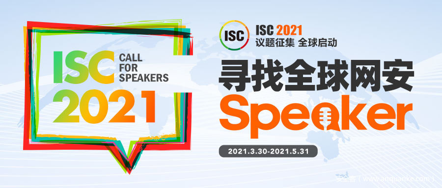ISC 2021现已正式面向全球启动2021年议题征集活动。本届议题征集将面向全球网络安全决策者、专家学者、技术从业者等,征集具有前瞻性、建设性的网络安全真知灼见,倾听不同声音,共同把脉网络攻防、感知安全边界、洞悉安全变局。
