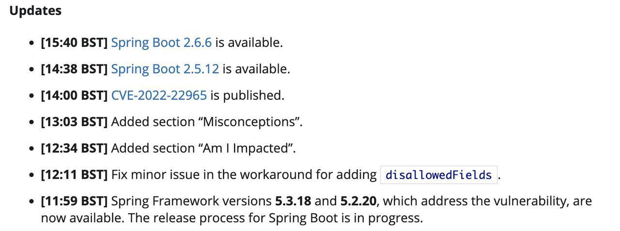 Spring 官方漏洞公告(https://spring.io/blog/2022/03/31/spring-framework-rce-early-announcement)