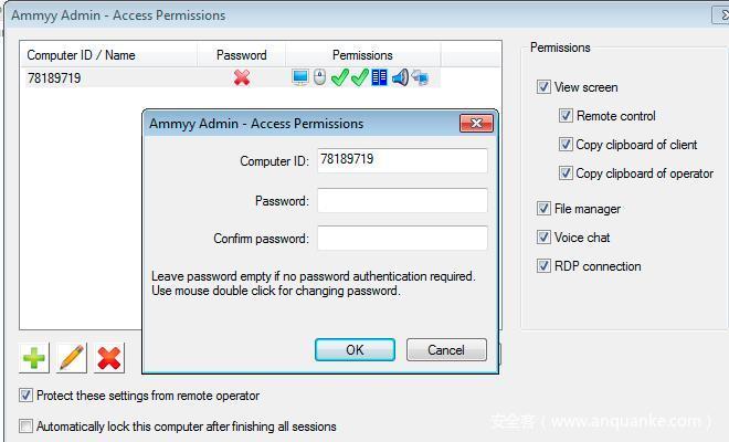 当我们查看转储文件时,我们设法找到了路由器IP地址和一个Ammyy Admin ID。手动安装Ammyy Admin允许我们查看设置窗口,并确认系统的ID与文件转储中找到的ID相匹配。在恶意软件分析并掌握了目标系统的Ammyy Admin ID后,会授予攻击者的ID对目标系统的完全访问权限,进而攻击者也就应该能够通过Ammyy Admin访问目标系统了。