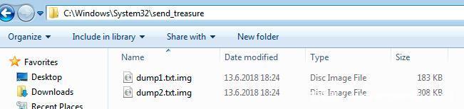 在完成上面的步骤之后,它将再次使用certutil对转储文件进行编码,然后使用WinRAR将转储文件压缩为两个文件(本示例中的dump1.txt.img和dump2.txt.img),它们将被放在一个“treasure”文件夹中(在本示例中是C:WindowsSystem32send_treasure)。
