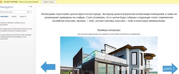 这种攻击的感染链从恶意文档开始,该文档是使用俄语编写的,并附带一座房屋的图像。其内容指示用户启用宏来打开整个文档。