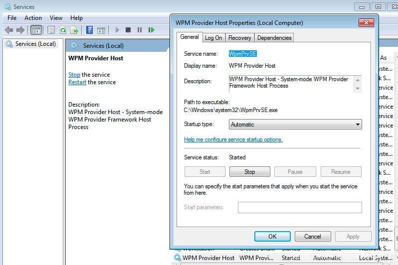 图5. WPM Provider Host服务及其属性的屏幕截图