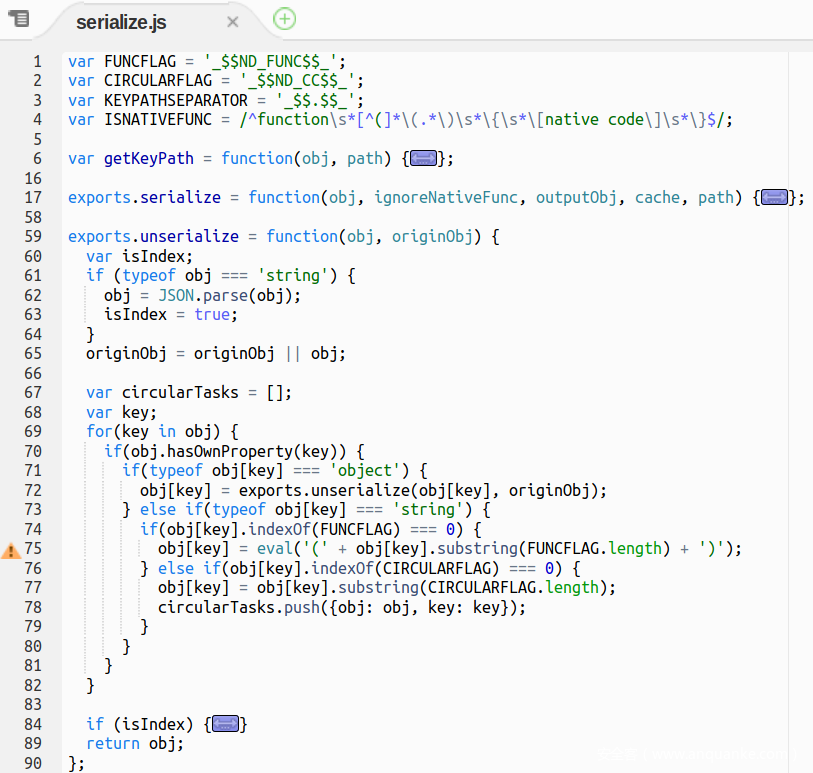 在上面的代码中,我们能看到用了eval() 函数来解析JSON数据,我们都知道应该避免它。然而,这只是一个,还有很多危险函数有相同的效果。