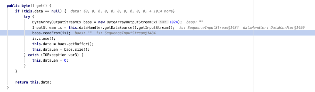 由于jdk.nashorn.internal.objects.NativeString的hashCode会先调用getStringValue(),它调用当前类的属性value的toString方法,由于value为com.sun.xml.internal.bind.v2.runtime.unmarshaller.Base64Data类,它的toString会触发自身的get函数