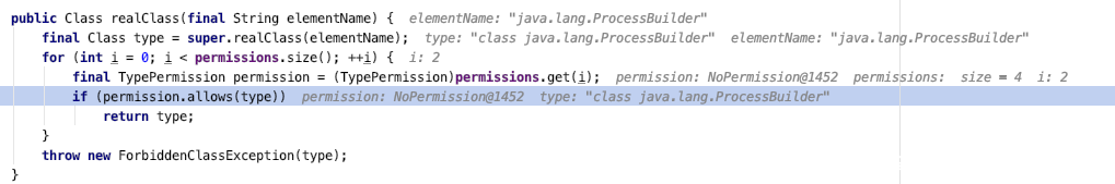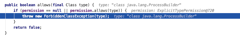 当我们在1.4.14中再次执行POC时,会发现抛出了ForbiddenClassException异常。