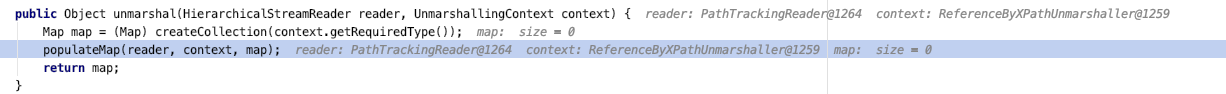 由于DynamicProxy类和EventHandler类的组合拳失效,因此这次漏洞并没有利用动态代理转换器,漏洞的触发点在MapConverter中,其unmarshal函数如下