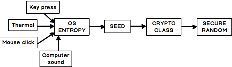 大多数情况下,计算机程序只能进行有限的一系列操作,如果一个函数的输入参数固定,输出也就是一样的。但是对于随机数生成器来说,由于随机数种子的存在,所以相同的输入并不会生成相同的输出。比如说,某些弱随机数生成器会使用时间来作为种子,所以很明显,这种条件是可以复制的。因此,我们要使用足够随机化的输入,才能得到足够的熵。