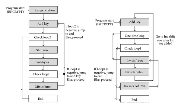 注:最后一个加密循环中省略MixColumns步骤,而以另一个AddRoundKey取代。
