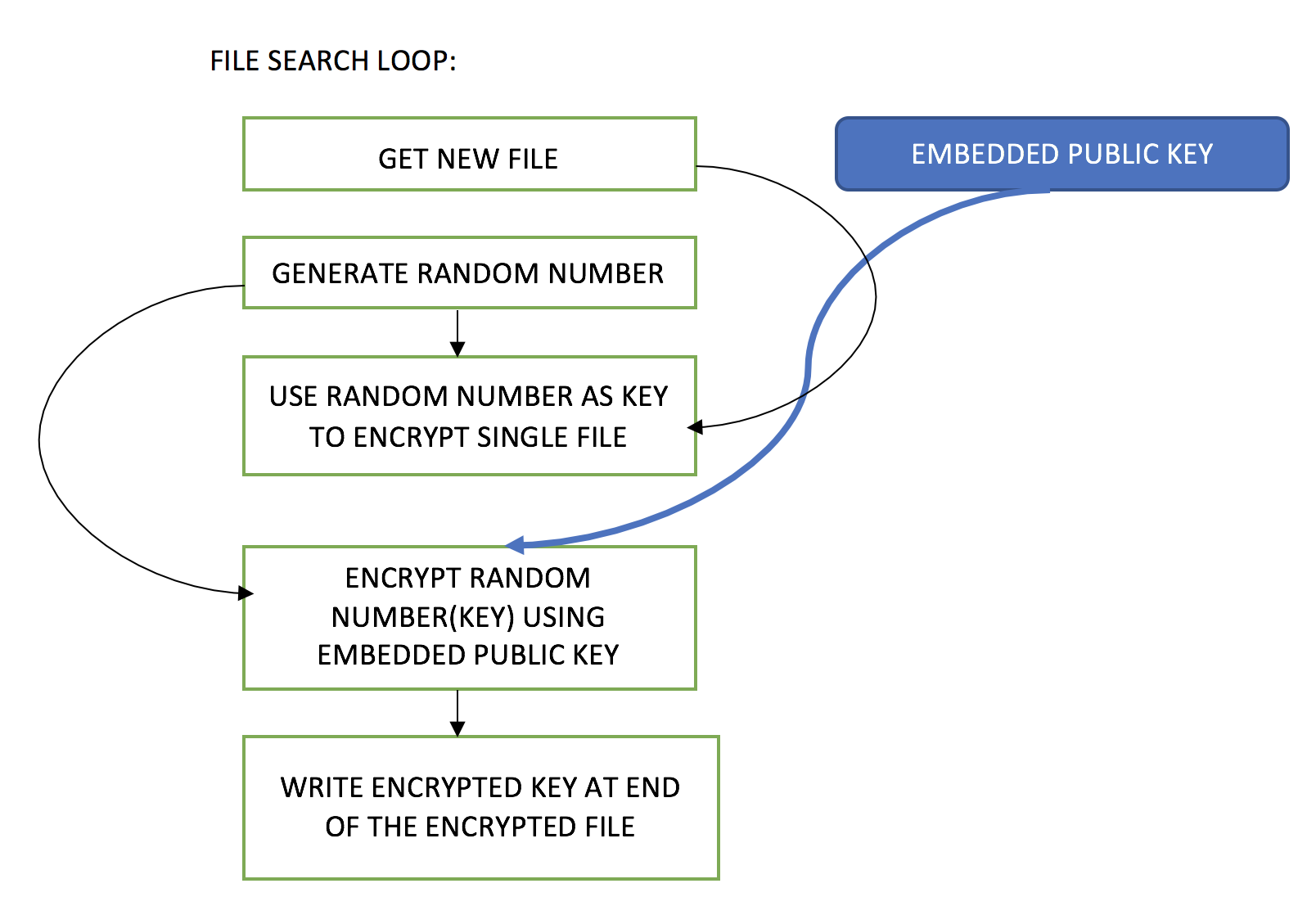 - 网络管理员分析了勒索软件,并看到了公钥,公钥是用来进行加密的,并作为勒索软件的目标用户ID。