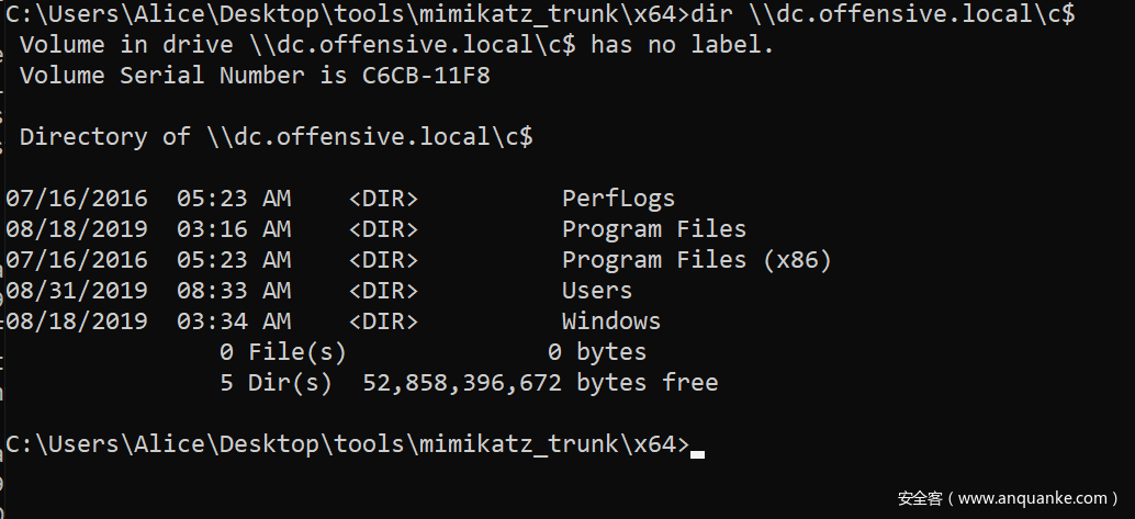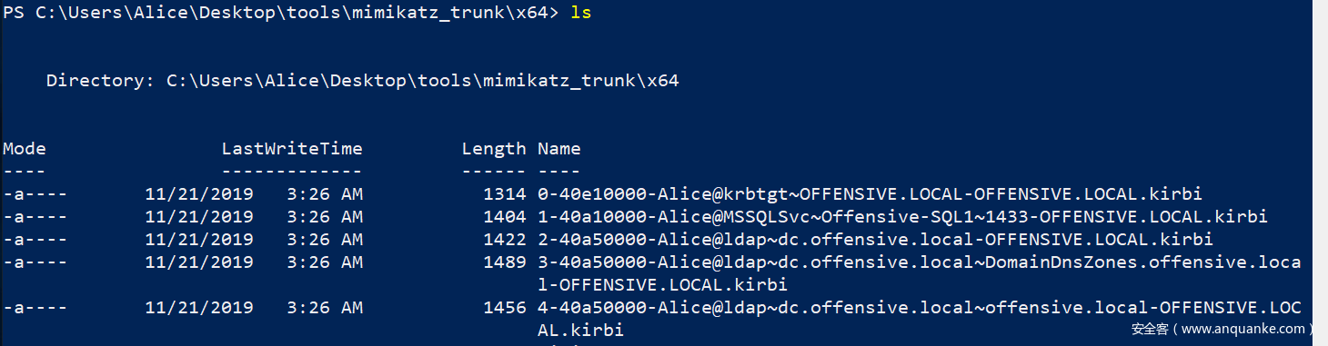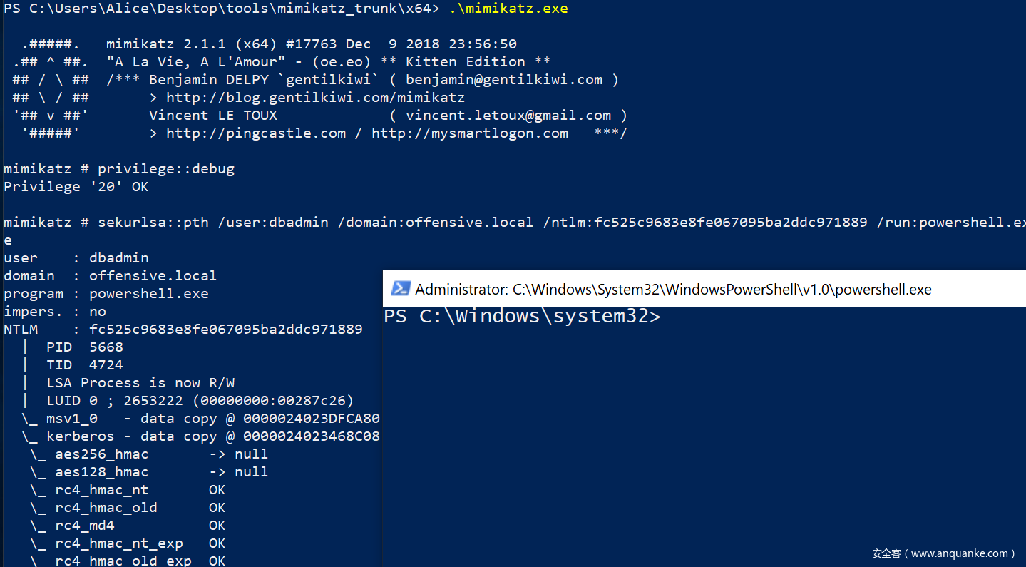 PS C:UsersaliceDesktoptoolsmimikatz_trunkx64>.mimikatz.exe