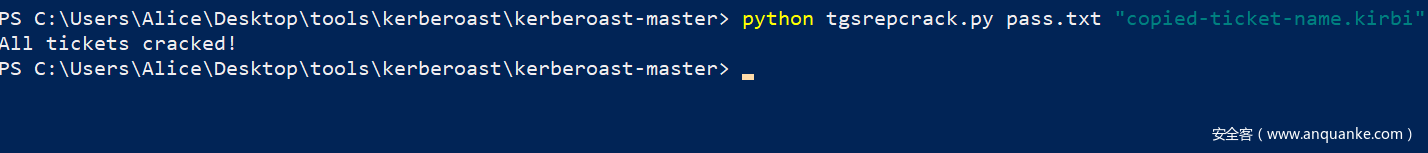 PS C:UsersaliceDesktoptoolskerberoastkerberoast-master>. .GetUserSPNs.ps1