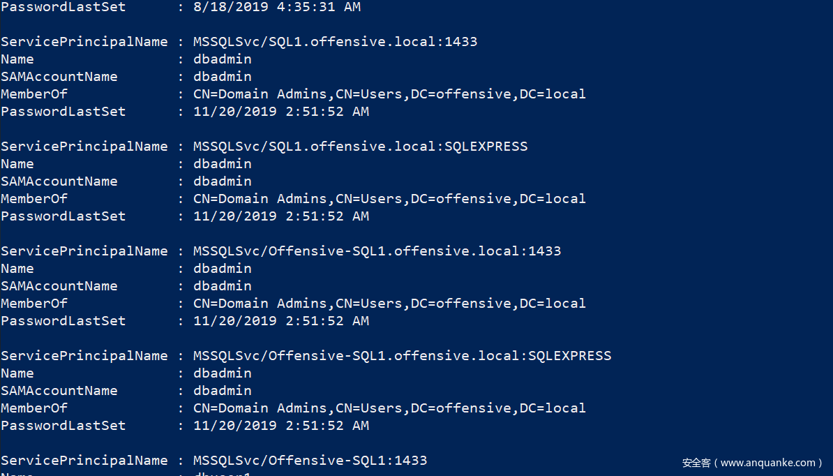 Step 1:使用GetUserSPNs.ps1扫描域中设置了 SPN的用户