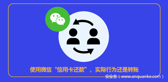 骗子引导用户使用微信“信用卡还款”,实际行为还是转账,即用户的微信绑定骗子指定的信用卡,向该信用卡转账。