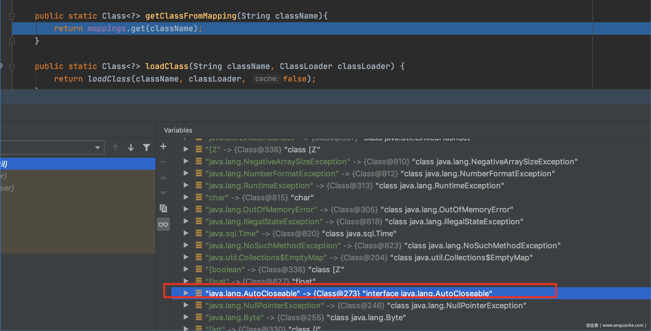 期望类在这里发生了变化,expectClass的值变为java.lang.AutoCloseable,typeName为gadget,