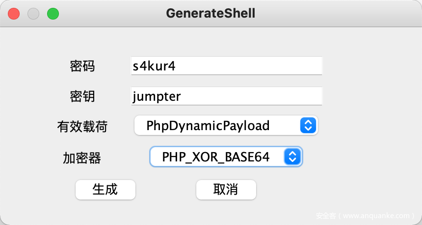 先生成一个php静态shell,加密器选择PHP_XOR_BASE64。