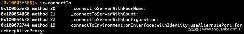 最后,我们发现守护进程apsd负责通过网络发送消息。多亏了Objective-C的消息调度系统,我们们可以通过搜索具有connectTo和send等名称的选择器快速了解TCP连接API调用发生的位置。