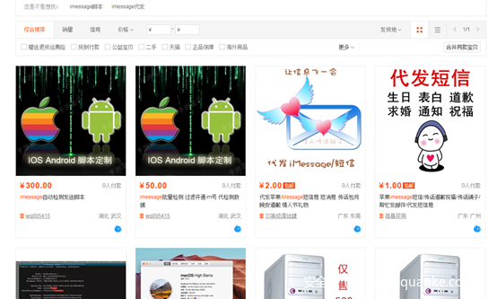 iMessage代发组织。iMessage代发其实并不违法,但是一般的项目需求量很小,很难走量,利润低。而菠菜(博彩黑话)、微商、A货、信用卡,贷款等需求就很多,其中以博彩为最大。