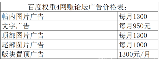 这些广告基本上都是靠$砸出来的。下图是某权重为4的广告论坛广告价位表。