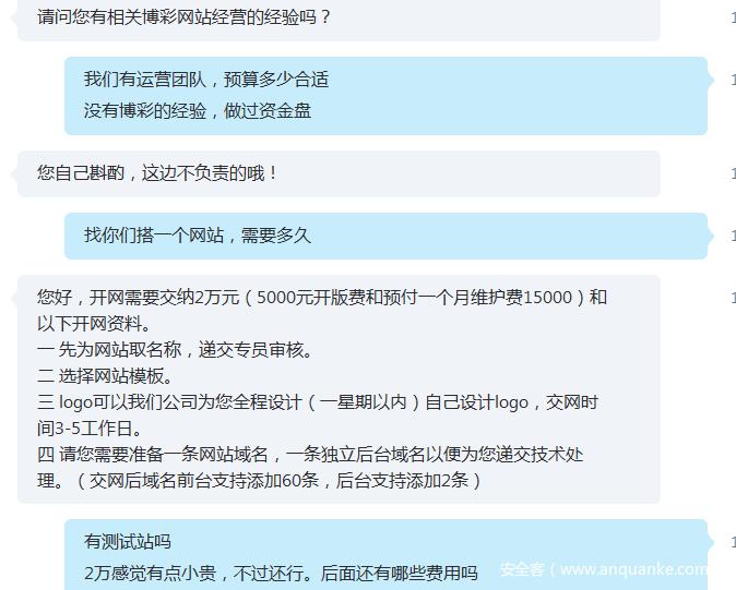 我们了解过多个平台搭建费用,目前搭建一个博彩网站大概费用在2万元~5万元左右,后期每个月的安全维护费用在1.5万元左右,这还没有算上后期运营的人工成本,推广成本,公司成本,等等因素。要想踏入这个行业,深不可测。如果没有一定的经验,资金与团队是很难做下来的。