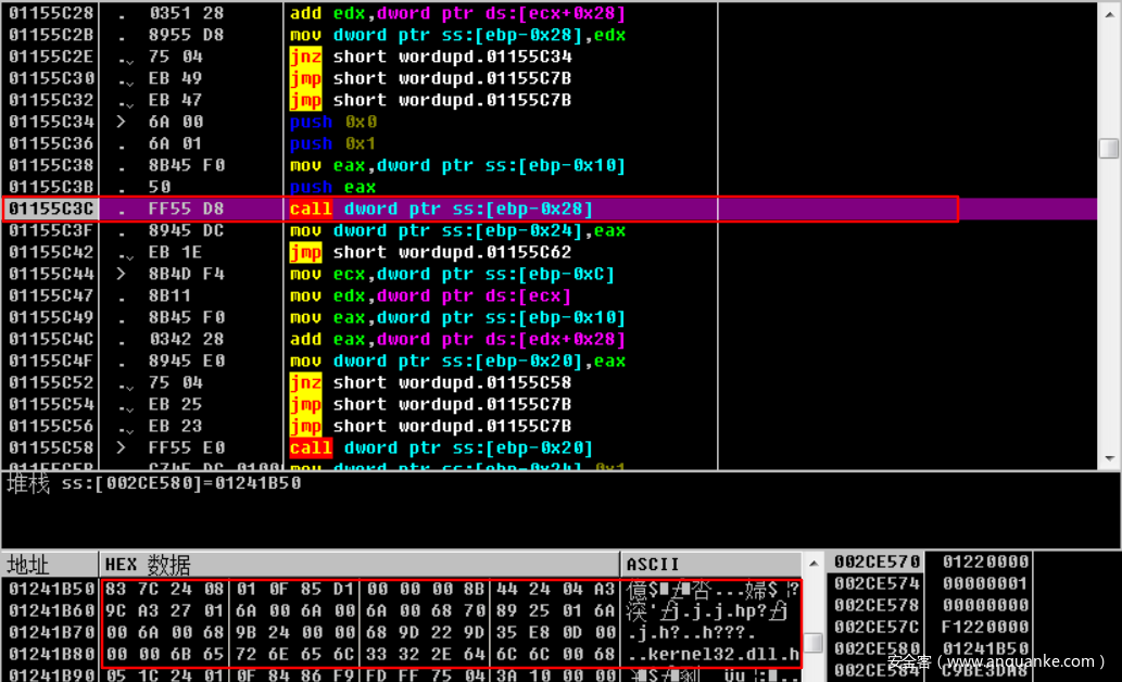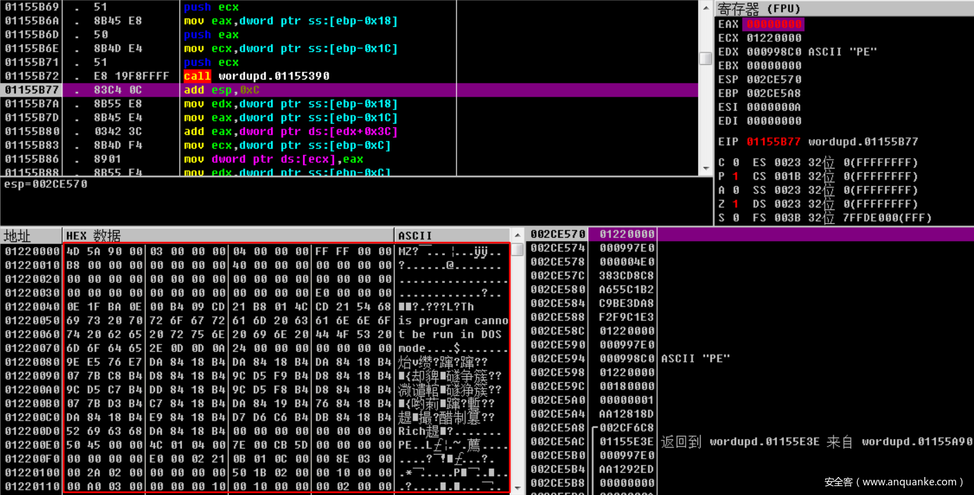 分配相应的内存空间,然后解密出勒索病毒的核心代码,如下所示: