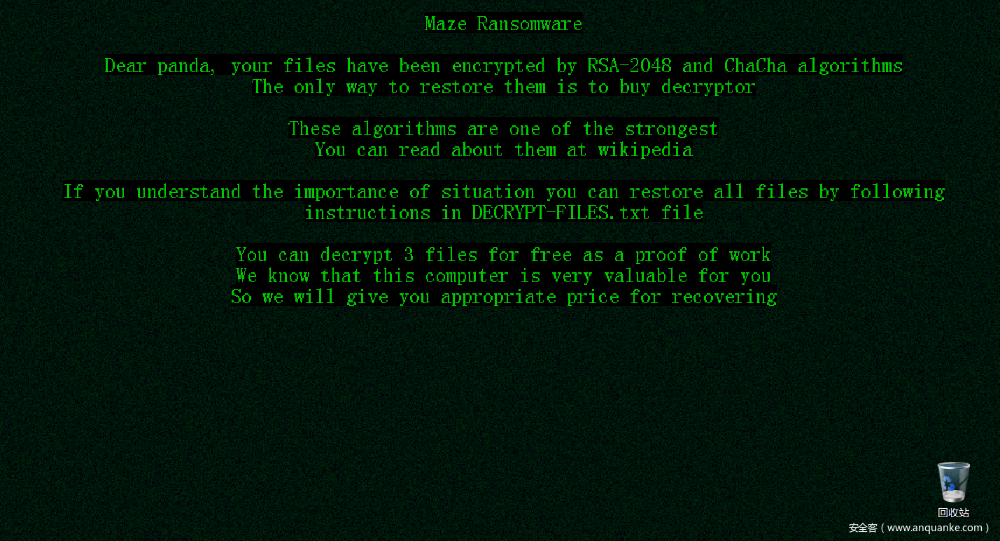 Maze勒索病毒,又称Chacha勒索病毒,是今年5月份由Malwarebytes安全研究员首次发现,此勒索病毒主要使用各种漏洞利用工具包Fallout、Spelevo,伪装成合法加密货币交换应用程序的假冒站点或挂马网站等方式进行分发传播,近日笔者监控到一例通过标题为RSA SecurID的诱饵文档传播此勒索病毒的最新样本