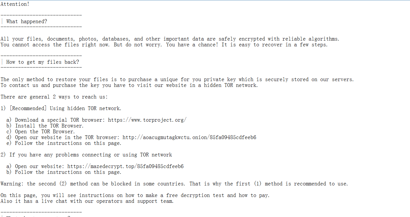 勒索提示信息文件DECRYPT-FILES.txt,内容如下所示: