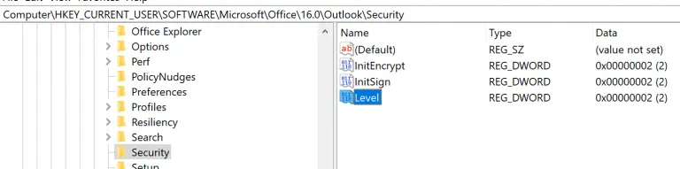 HKEY_CURRENT_USER\Software\Microsoft\Office\16.0\Outlook\Security密钥和值级别的创建/更改事件(Sysmon事件ID 12)。