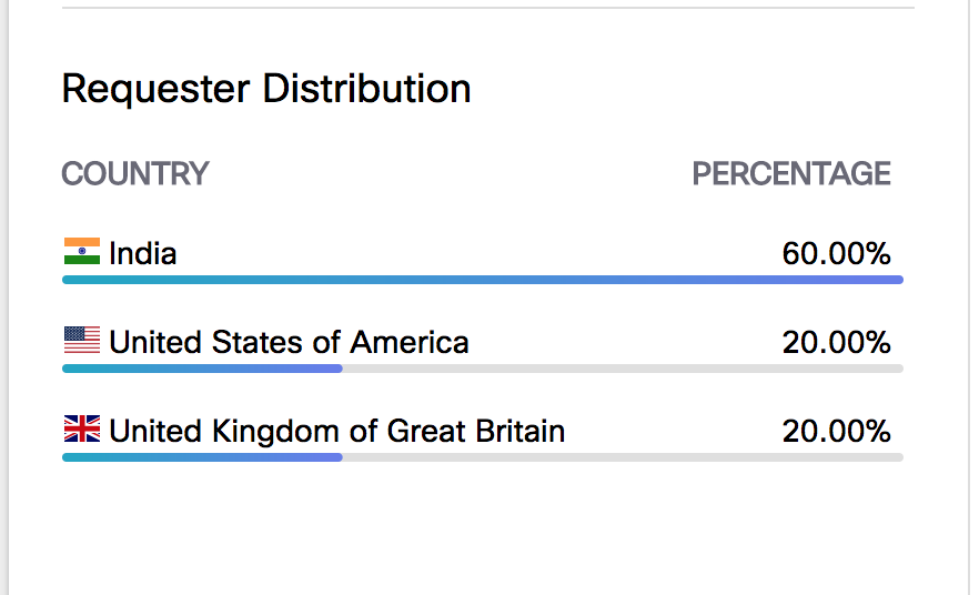 2017年8月,印度国家CERT发布了针对性恶意攻击活动的安全公告。这份安全公告中提到了GravityRAT所使用的C2服务器基础架构,这表明GravityRAT作者很有可能针对的是印度的实体/组织。利用Cisco Umbrella并使用调查工具后,我们发现,在所有的C2域名列表中有来自印度的大量流量。根据印度国家CERT提供的证据,对C2域名的所有请求中至少有50%的请求来自于印度的IP地址。在研究过程中,非印度归属地的IP地址可能掺杂我们自己的IP地址。