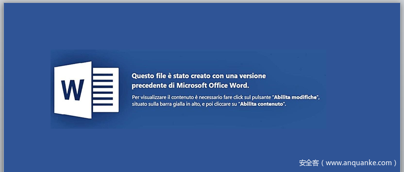 图1 附件文档采用意大利语诱导用户启用宏来查看文档内容