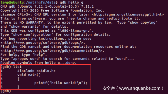 a.调试有调试信息的程序;(使用gcc编译加-g选项)