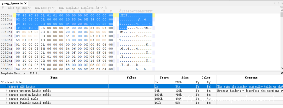 在010editor中使用ELF模板,即可对ELF文件进行结构解析。