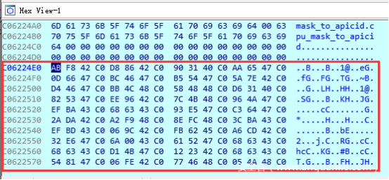 在IDA的Hex View界面中,可以查看Linux主机中系统调用表中的所有系统调用地址: