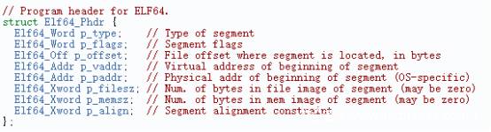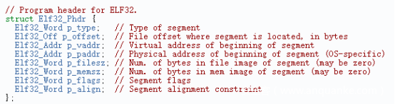 ELF程序头是对二进制文件中段的描述,是程序装载必需的一部分。段是在内核装载时被解析的,描述了磁盘上可执行文件的内存布局以及如何映射到内存中。